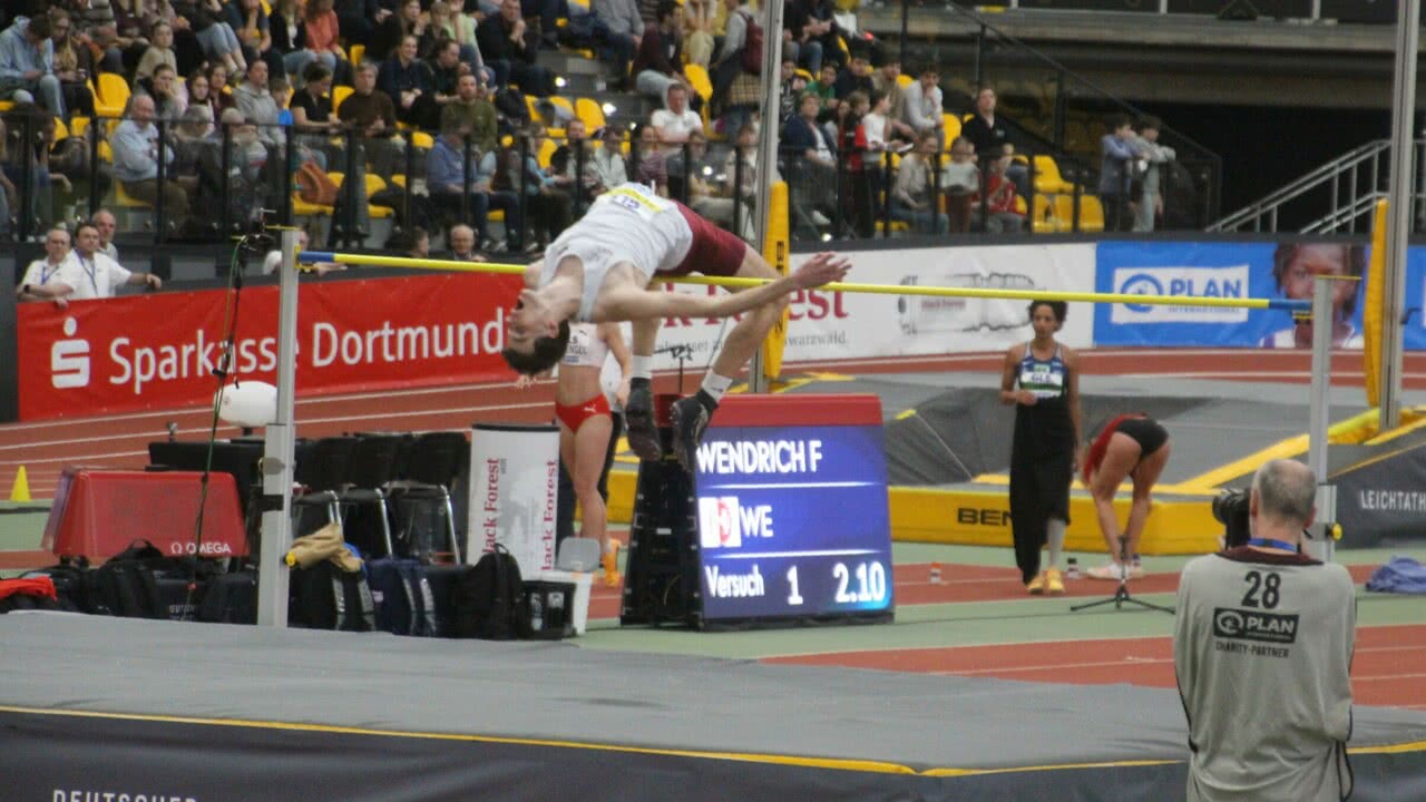 Für den goldenen Abschluss der Deutschen Meisterschaften sorgte Falk Wendrich vom LAZ Soest. Der Hochspringer flog über 2,19 Meter und sicherte sich zum ersten Mal den Hallentitel bei nationalen Titelkämpfen. „Der erste Meistertitel schmeckt besonders süß, war aber auch sehr erschöpfend, weil bis gestern noch nicht sicher war, ob ich springen kann, weil am Mittwoch die Bronchitis bei mir angefangen hat. Jetzt geht es mir wieder besser und auch im Wettkampf kam dann irgendwann die Energie in meinen Körper. Jetzt kann ich meinen ersten Meistertitel feiern.“