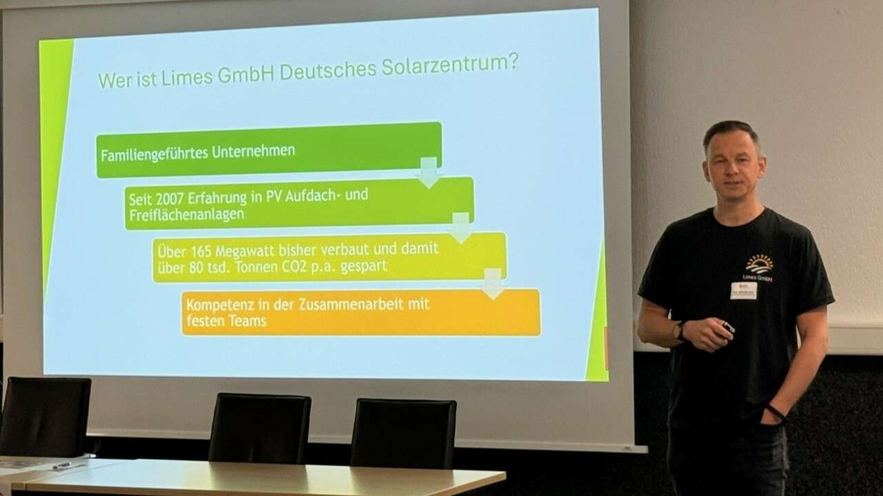 Wie verdiene ich als Verein mit Freiflächen etwas dazu und helfe gleichzeitig dem Klima? Antworten gab es von Limes GmbH Deutsches Solarzentrum.